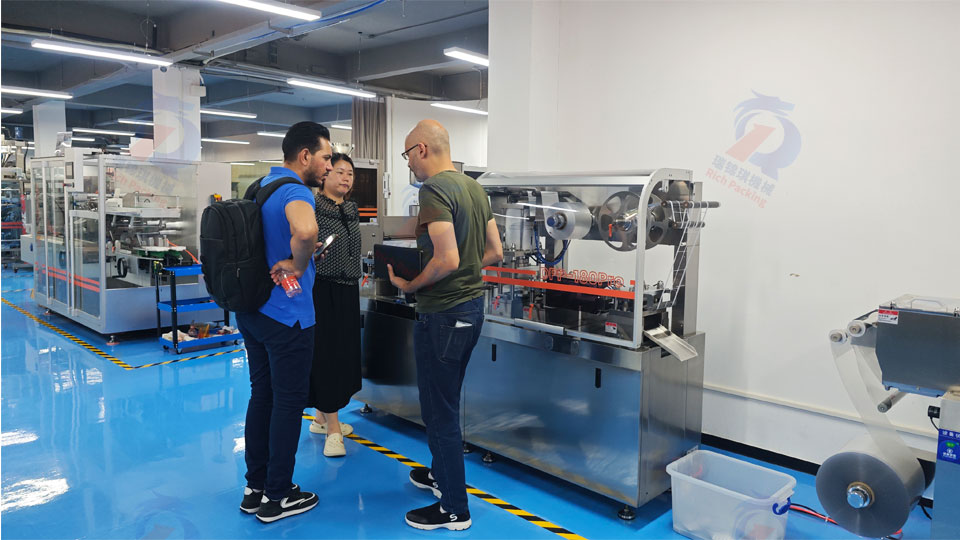 近日,埃及某知名制药企业生产团队专程访问广东瑞锦琪包装机械有限公司,重点考察了DPP-180Pro平板式铝塑泡罩包装机的实际运行表现。该客户此前长期受困于旧型设备调试困难、热封压泡、操作复杂等痛点,此次来访旨在寻找一款能够全面提升生产效率、降低操作门槛的换代设备。瑞锦琪技术团队通过现场演示和深度技术交流,全面展示了180Pro机型在易操作性、稳定性和维护便捷性方面的突破性优势。