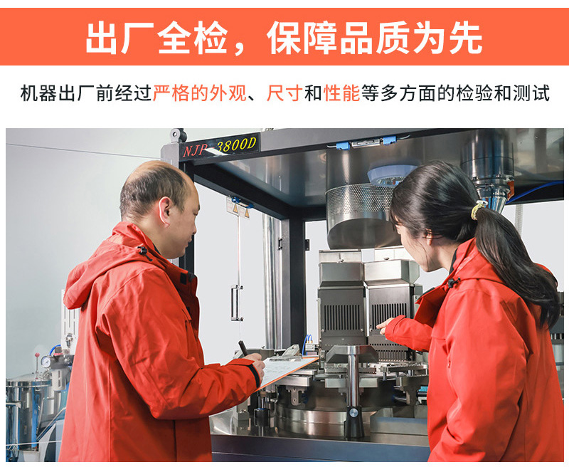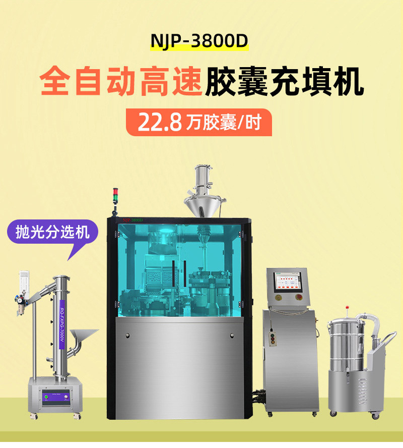 NJP-3800D全自动胶囊填充机的内槽凸轮由CNC加工中心一次成型,这一工艺在行业内具有独特的优势。与传统的拼接式凸轮相比,无对开、无拼接、无缝隙的设计使得内槽凸轮结构更加稳固。在胶囊灌装机高速运转时,传动机构能够保持平稳,不会因为凸轮的问题而产生震动或噪音。稳定的传动不仅提升了生产环境的舒适度,减少了噪音对操作人员的干扰,保障员工的身心健康;同时,也避免了因震动和噪音可能导致的设备零部件磨损加剧的问题,延长了制药胶囊充填机的使用寿命,降低了企业的设备维护和更换成本,为企业的长期稳定生产提供了可靠的保障。
