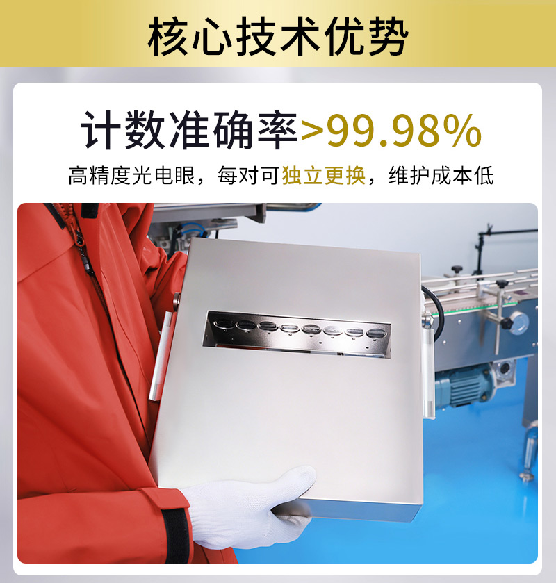 RQ-DSL-8D全自动数粒机在结构设计上独具匠心。自动数粒装瓶机采用新型平台结构,将震动检测机构和电源电器控制机构巧妙分离。这种设计就像给电子数粒机的不同部分划分了独立的区域,确保震动运行平稳准确,减少了数片机运行时各部分之间的干扰。同时,还能提高数粒精度,延长设备使用寿命。对于企业来说,一台稳定可靠、使用寿命长的全自动数粒机,能为企业节省大量的设备更新成本,为企业的稳定生产提供坚实保障。8通道药片胶囊数粒机在运行过程中能实时监控运行状态,一旦出现故障,会及时发出提醒。操作人员可以根据提示迅速处理问题,保障生产的连续性,减少停机时间。