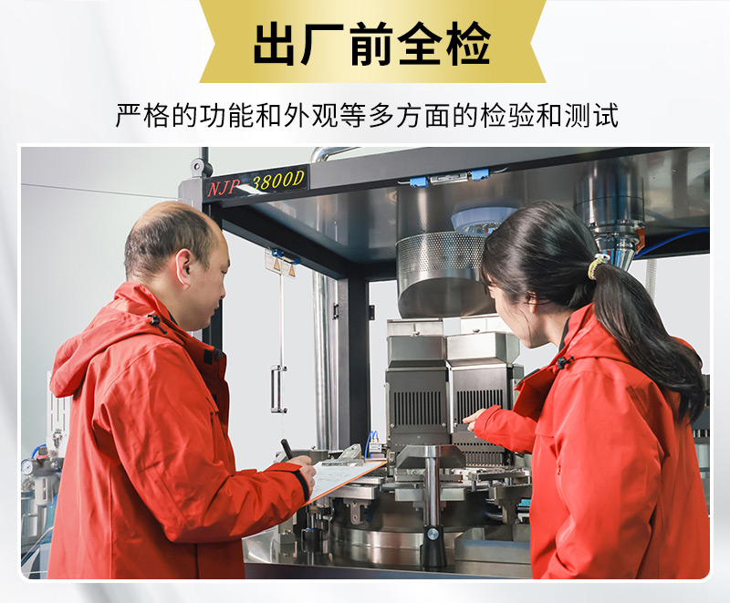 NJP-5500D全自动胶囊充填机采用创新的双密封轴设计,通过NBR丁睛橡胶和进口SIL硅胶双重防护,有效解决轴承卡机问题。这款全自动制药胶囊机设备的内槽凸轮采用CNC加工中心一次成型,确保高速运行时传动平稳无噪音。该自动胶囊灌装机配备智能润滑系统,实现定时定量自动加油,符合cGMP规范要求。创新的抽拉卡槽式充填杆夹持器使模具更换更加便捷快速,15分钟内即可完成。这款制药硬胶囊充填机所有接触药品部位均采用316不锈钢材质,确保产品卫生安全。粉末颗粒微丸胶囊机配备德国贝克干式真空泵,吸囊效果稳定可靠。