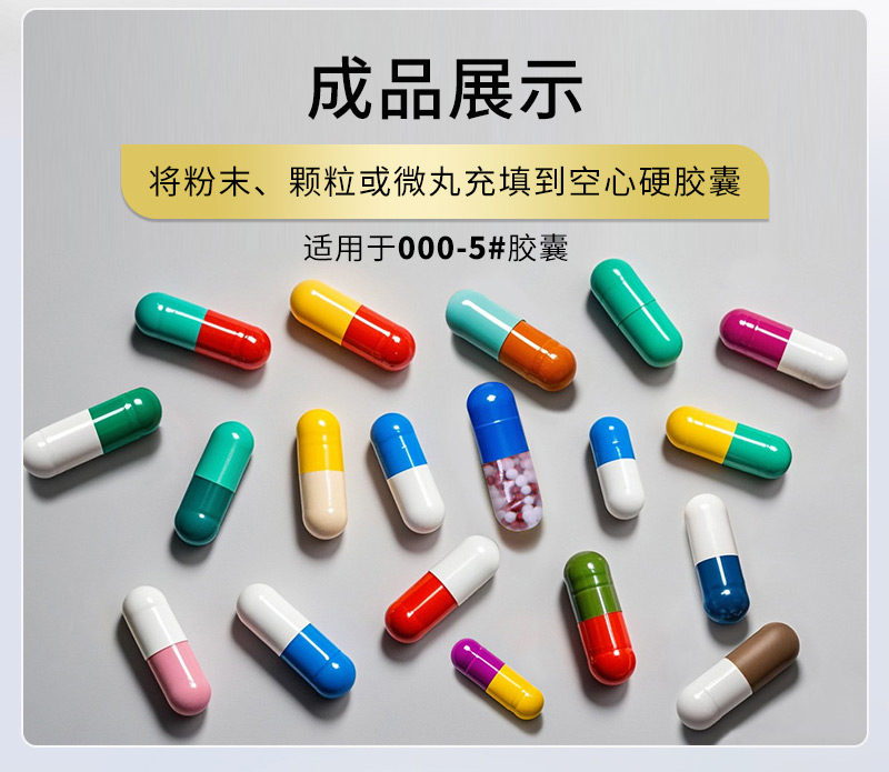 产品功能:将粉末、颗粒或微丸等物料充填到空心硬胶囊