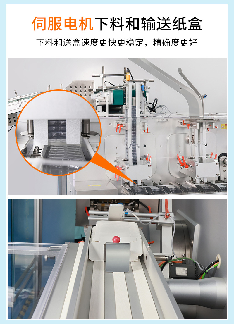 产品功能:适用于药板、瓶子、小袋、软膏、口服液等自动装盒