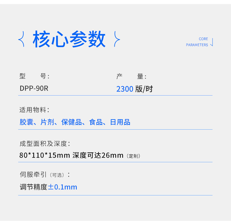 产品功能:适用于药片、硬胶囊、软胶囊、药丸等产品的铝塑或铝铝包装