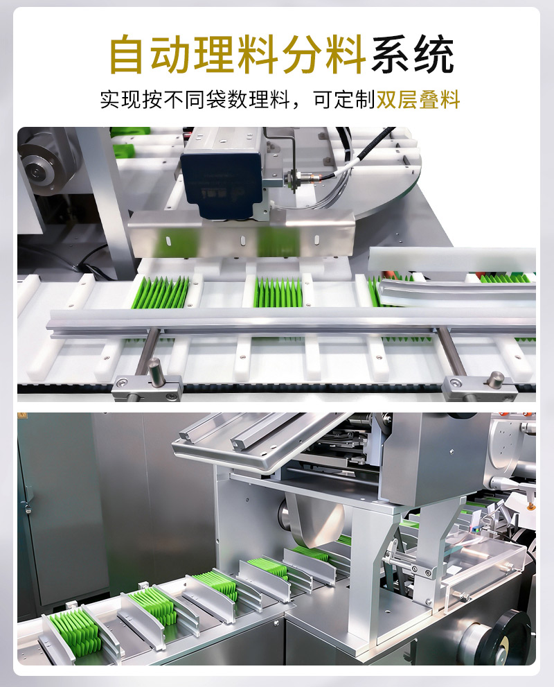 产品功能:对物料进行条形小袋包装后,再多袋装盒机