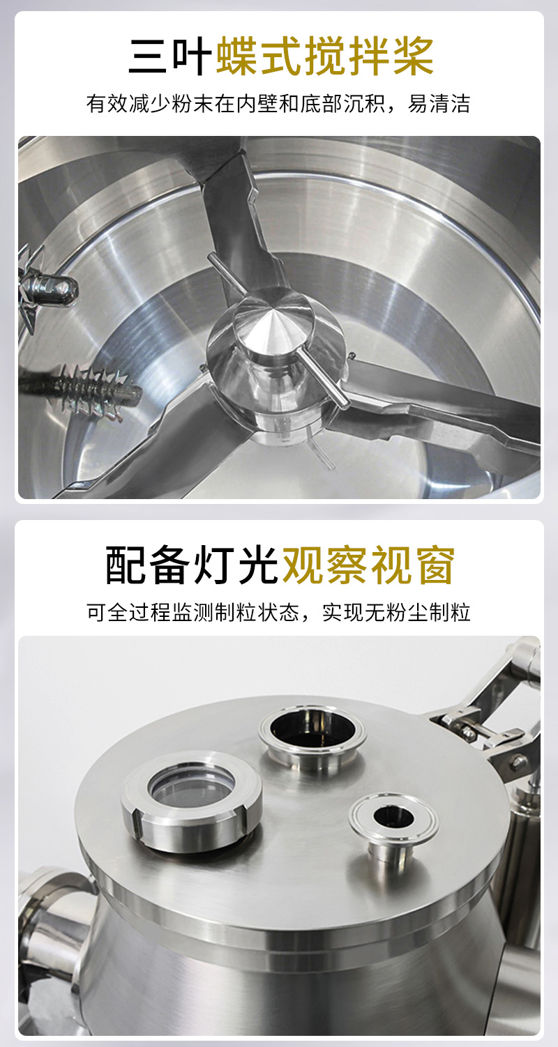 产品功能:将粉末制成均匀、致密、流动性好的湿颗粒
