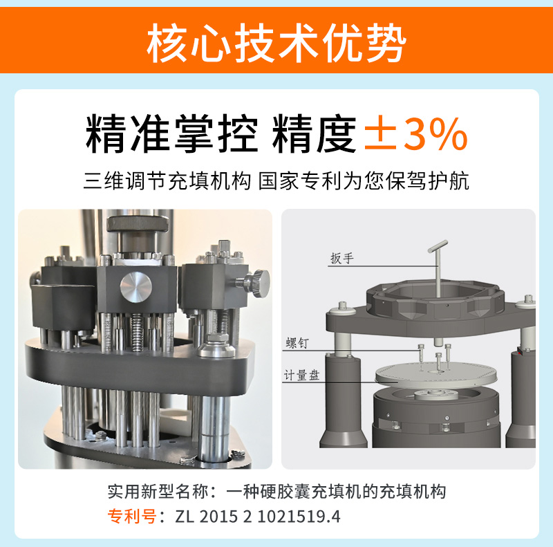 产品功能:将粉末、微丸或颗粒充填到空心硬胶囊