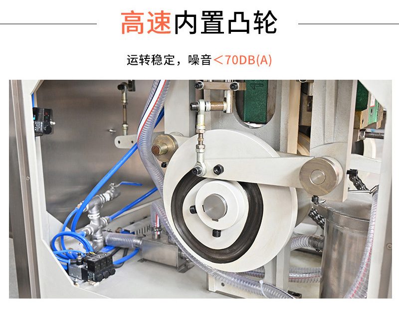 NJP-3800D全自动胶囊填充机的内槽凸轮由CNC加工中心一次成型,这一工艺在行业内具有独特的优势。与传统的拼接式凸轮相比,无对开、无拼接、无缝隙的设计使得内槽凸轮结构更加稳固。在胶囊灌装机高速运转时,传动机构能够保持平稳,不会因为凸轮的问题而产生震动或噪音。稳定的传动不仅提升了生产环境的舒适度,减少了噪音对操作人员的干扰,保障员工的身心健康;同时,也避免了因震动和噪音可能导致的设备零部件磨损加剧的问题,延长了制药胶囊充填机的使用寿命,降低了企业的设备维护和更换成本,为企业的长期稳定生产提供了可靠的保障。
