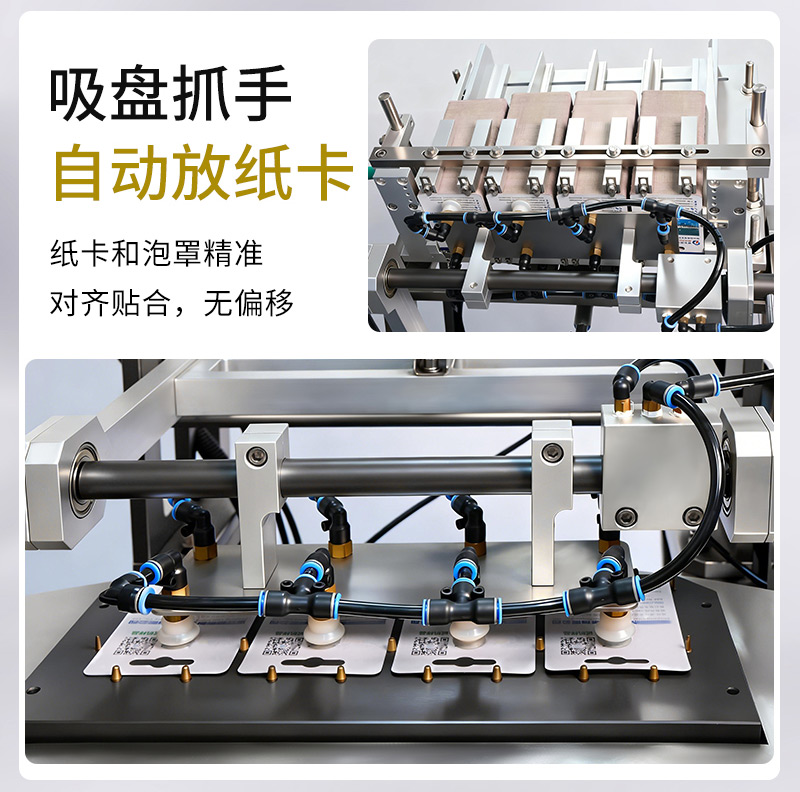 此多功能纸卡吸塑包装机采用恒温加热与液压缸加压系统,封口牢固平整、不翘边、不起泡,适配PVC、PET、PS等多种吸塑材料,包装成品美观防尘,适合批量自动化生产。转盘式吸塑包装机支持单双面纸卡吸塑包装,可根据产品尺寸快速调整模具,换型快捷。